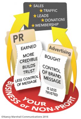 Both advertising and PR help build brands and communicate with target audiences. The most basic difference between them is that advertising space is paid while public relations results are earned.